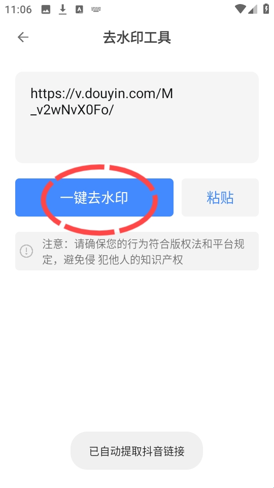 3、然后自定义输入正确的短视频链接地址,直接点击“一键去水印”。