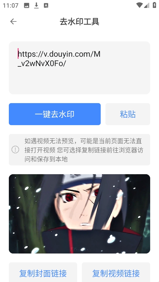 4、等待片刻之后,界面上就会出现成功去除水印的视频,可以直接复制视频链接。