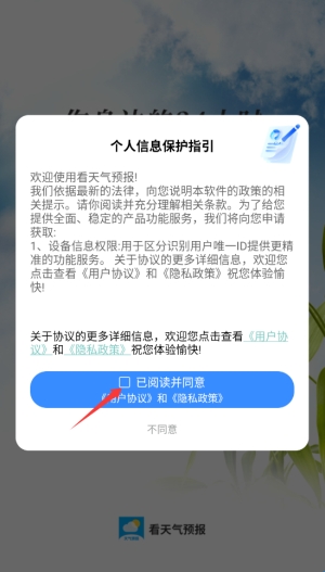 1、启动APP后,首次使用需阅读并同意用户协议和隐私政策,点击"同意"进入主界面。