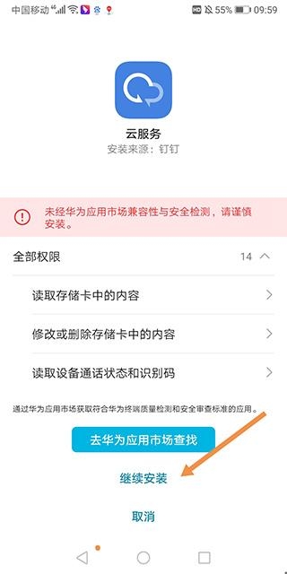 1、首先在本站免费下载该应用安装包后就可以像其它软件一样在华为手机上安装,安装时会跳出华为应用市场检测机制,可以忽悠点击【继续安装】即可