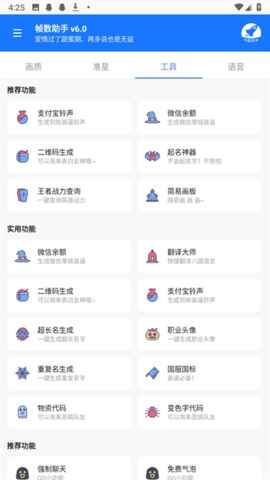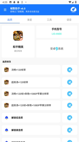 帧数助手是一款专为吃鸡游戏打造的画质修改软件。软件中支持多种修改模式,根据用户的手机型号以及系统来对画质进行修改,超高清120帧、流畅120帧用户可以自由选择更改,还有专门的准星更改设置,一键解锁画质,更换喜欢的准星,实现超高清画质畅玩游戏。