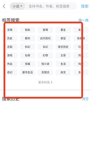 进入首页并点击输入框;输入关键词检索喜欢的小说资源