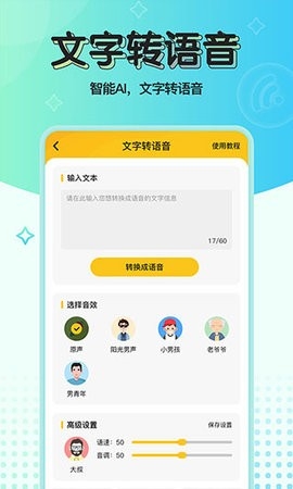 7、可以进行文字转语音,让软件来进行表达自己想要说的话,自由设置声音。