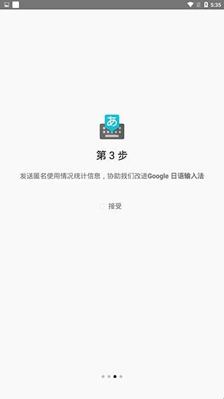 5、第三步,发送匿名使用情况统计信息,协助我们改进Google日语输入法,这里接受不接受都可以,不影响使用。