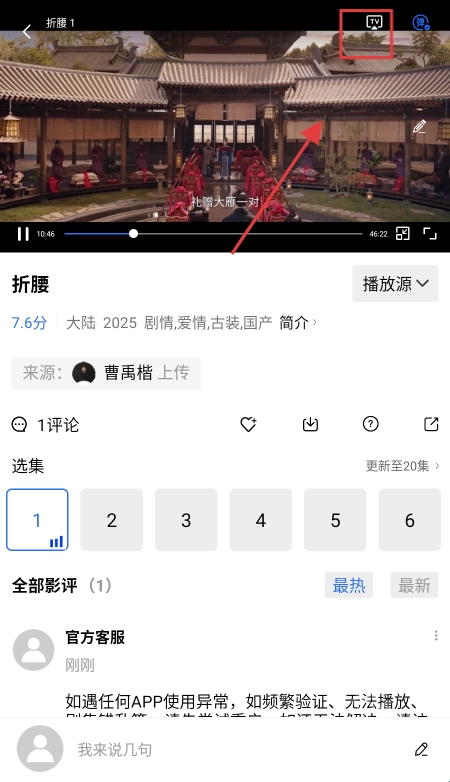 进入播放页面,点击视频右下角的“投屏”按钮,并选择您要投屏的电视