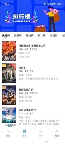 3、拥有最全的排行榜内容,热播,热搜,新片,飚升和电视剧电影等。
