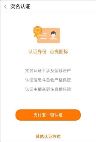 5、第一、二步我们登陆就已经完成了,接下来就要完成认证部分,斗鱼认证有两种选择,一种是“支付宝认证”,另一种是”身份证认证“,点击其它认证。二选一,随便选,看你那个顺手就选那个。