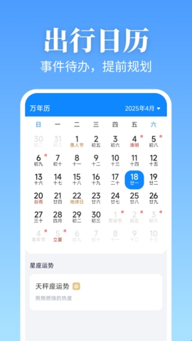 详细的万年历信息,可全面知道日期详情,知道宜忌情况,便于高效选择办事;