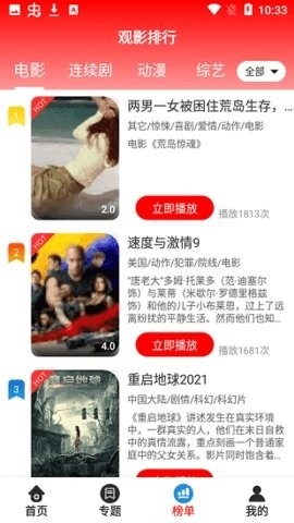3、榜单页面可以观看到电影、电视剧、综艺等排行榜