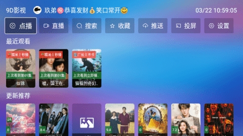 9D影视TV版(9D影视)是一款页面纯净、观影没有广告弹窗的影视盒子软件。软件中每天都会提供最新的影视资源更新,涵盖了很多的类型,让用户可以在首页了解观看到其他平台最新热播的影视剧,全部都支持超清画质,并且还可以一键投屏哦,还有专属的电视直播栏目可以观看节目频道。