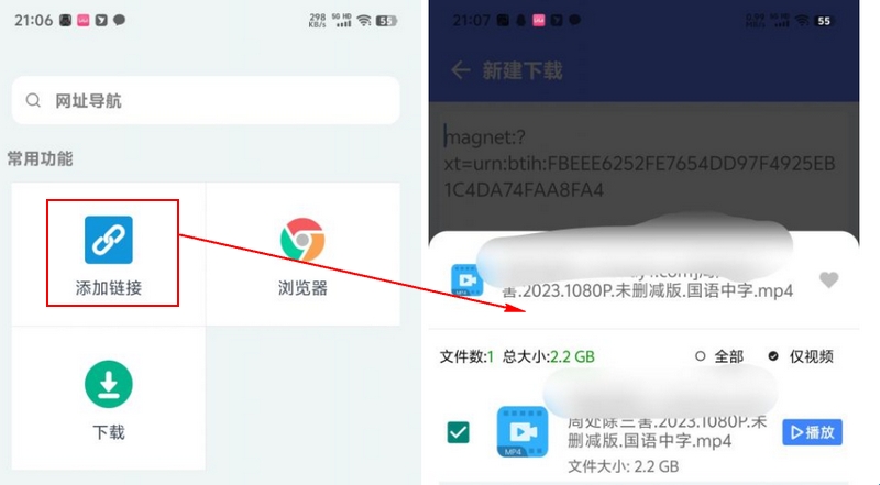 4、可以当做浏览器使用,你只需要找到你想要下载的磁力链接,点击添加链接即可。