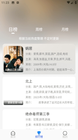 热门影视榜单:设有实时更新的热门影视排行榜和最新影视上线榜,助你快速发现当下最火的影视内容,轻松找到感兴趣的作品。