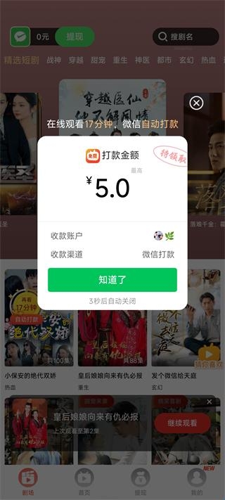 2、更新及时:实时更新最新的短剧作品,让用户能够观看到最新的、最热门的短剧作品。