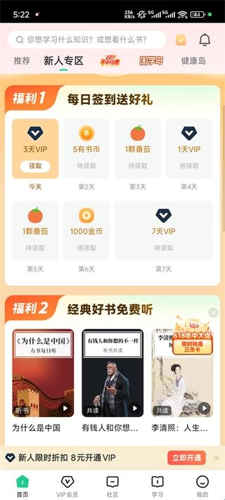1、打开有书App,先领取下福利