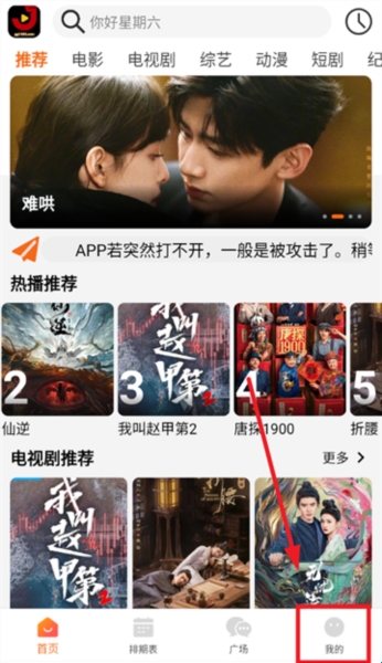 在本站下载安装并打开金牌影院app,进入首页后点击我的