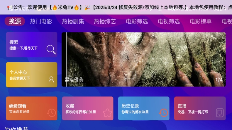 3、到达首页,这里就可以免费看电视了;