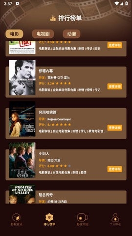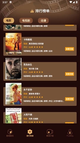 1、实时更新影剧排行榜:影剧排行榜单实时更新,数据真实准确,帮助用户快速了解当下热门影视动态,为观影选择提供参考。