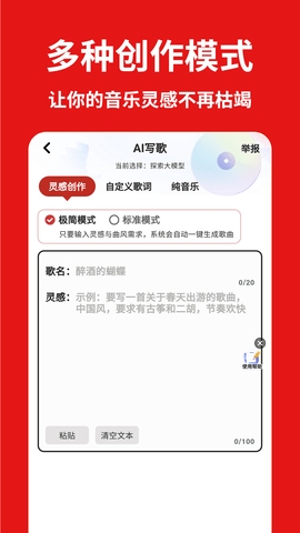AI智能作词:智能辅助创作歌词,精准匹配韵脚,让创作行云流水,挖掘潜在文采。