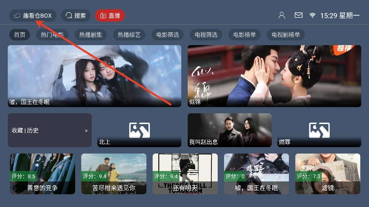 1、进入首页,点击左上角趣看仓BOX