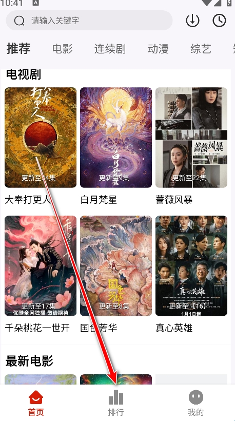1、打开MITO影视,点击首页上方的搜索框输入关键字即可找到我们心仪的资源。