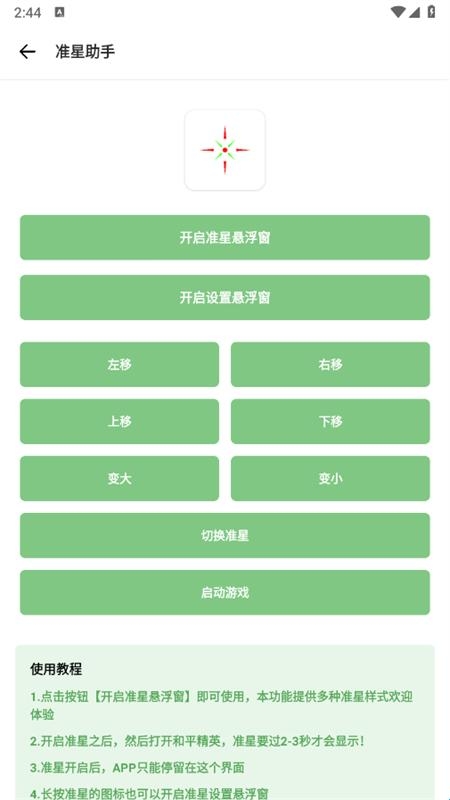 3、点击准心助手可以一键开启准心悬浮窗