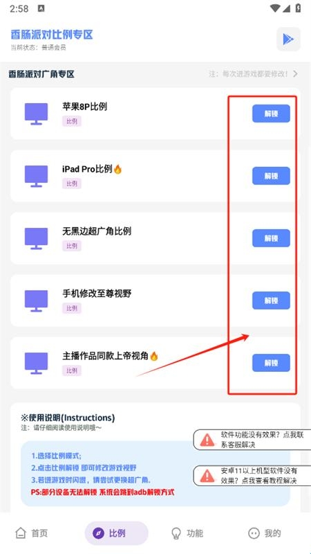5、在比例页面可以解锁不同的比例,修改游戏视野