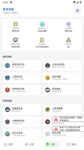 6、点击进入功能页面,这里为大家提供了灵敏度生成、大神操作布局、人物捏脸码等功能可以使用