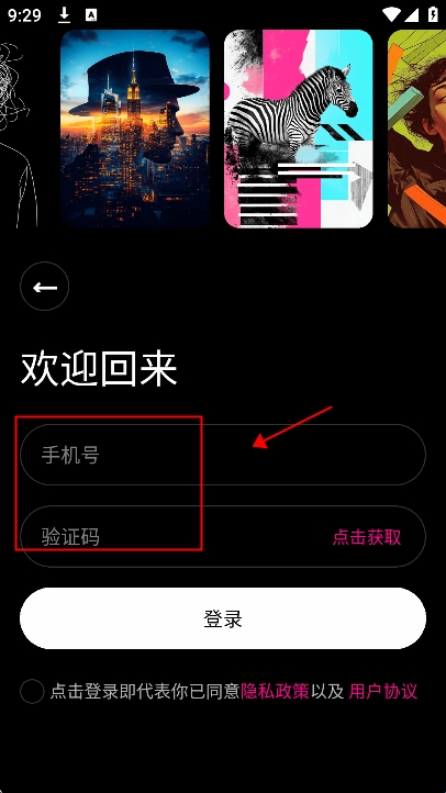 打开app,新用户可以用手机号登录注册账号