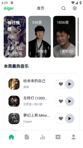 想免费听遍全网最新、最热、最经典的音乐吗?试试这款AlgerMusicPlayer,这里拥有海量正版音乐资源,多种不同类型的音乐满足你的听歌需求!没有版权限制,可以免费听全网音乐资源,支持登录网抑云账号,没有烦人的广告,喜欢听歌的用户千万不要错过。
