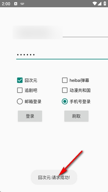3、选择应用和登录方式,如手机就输入手机号及密码,登录成功和操作成功会有提示。