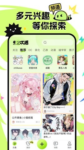 1.频道:动漫、美化、OC…这里有最多元的兴趣频道等你发现
