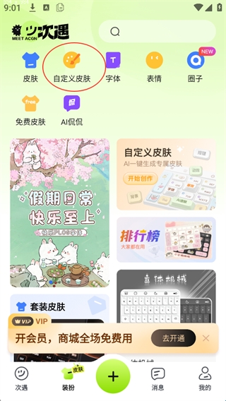 1、进入装扮板块,点击自定义皮肤。