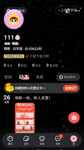 这里可以可以看到自己发的动态和一些基础设置