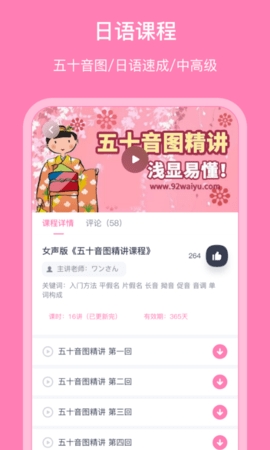 2、为用户提供五十音图精讲课程,让用户从基础开始学习各种日语知识;