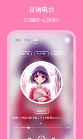 3、应用中有各种日语电台,通过电台快速的模仿日语口语,了解日语新闻;