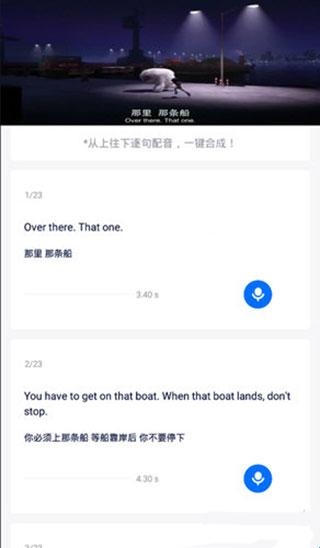 1、用户只需选择你想要合配的视频,根据段落点击录音即可进行合配,如下图所示: