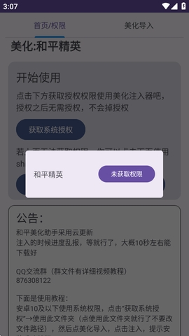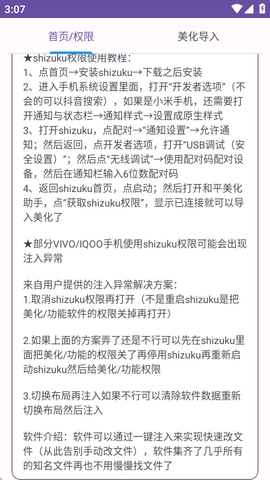 1、进入首页后需要先获取系统授权,也可以点击获取shizuku权限。
