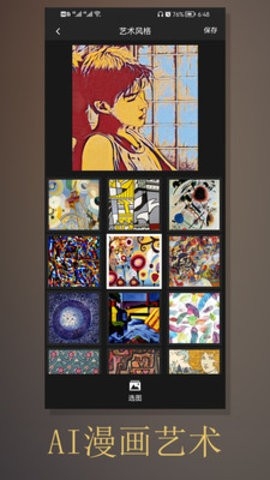 3、点击图片漫化,选择图片,然后选择喜欢的漫画风格,点击保存即可