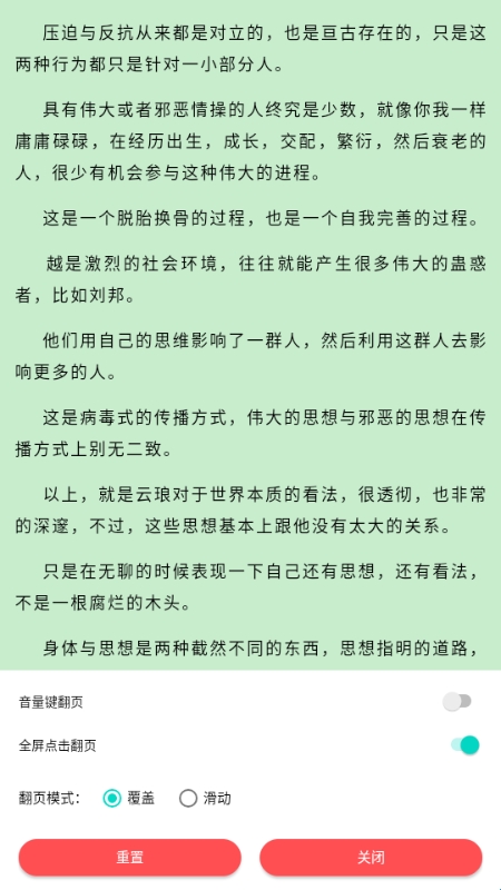 4、可进行自动翻页,更换阅读背景色等一系列功能。