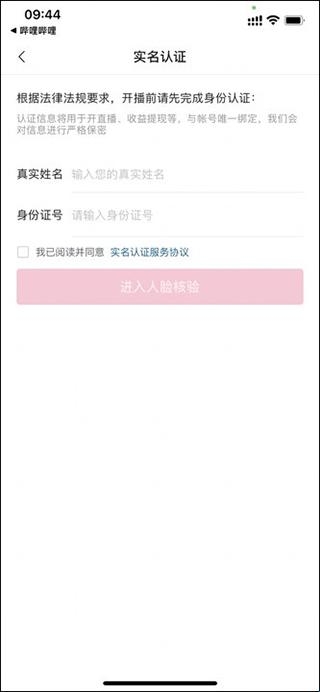 4、进入实名认证的页面上输入姓名和身份证号,打勾服务协议,点击“进入人脸核验”;