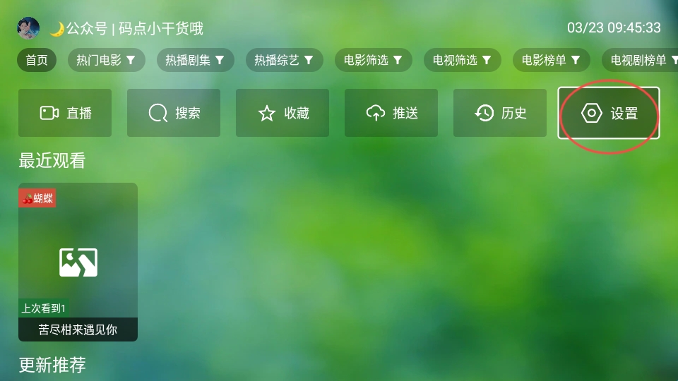 1、进入软件之后,点击首页的“设置”。