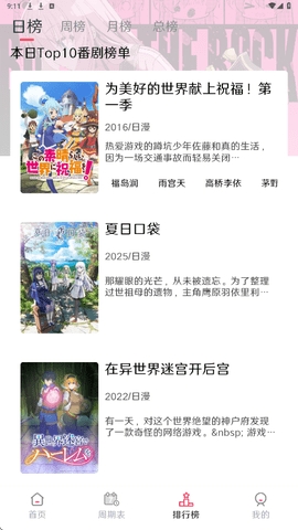 根据动漫的受欢迎程度进行一个榜单的排行,从而轻松知道什么样的动漫是不错的!