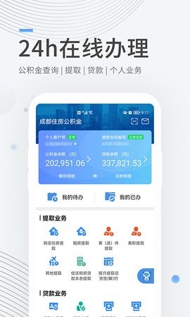随时随地在手机端提交业务、公积金中心人工审批、资金实时到账。