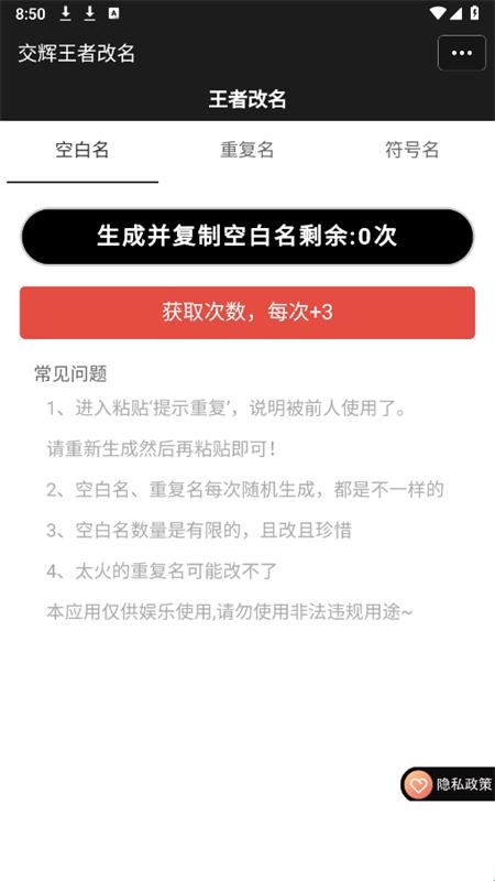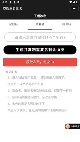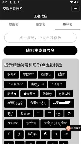 2、点击空白名,可以快速生成并复制空白名
