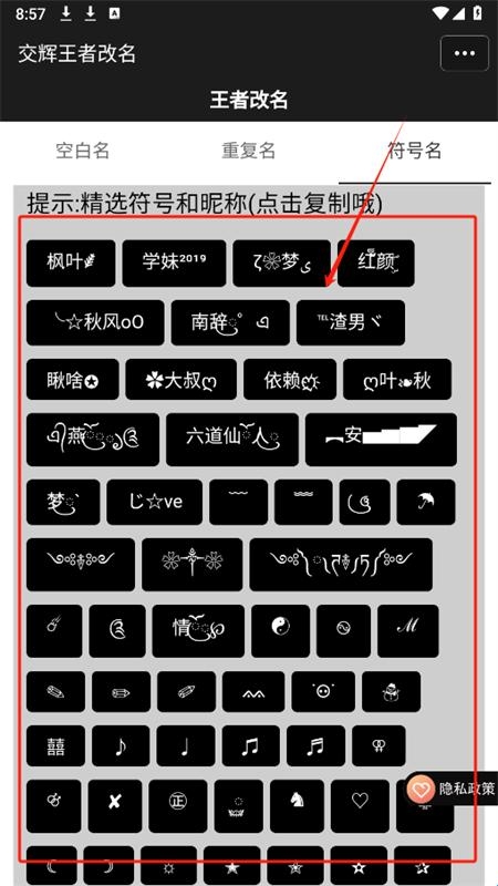 4、往下滑动还可以直接复制符号和昵称进行使用