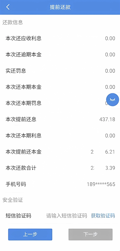 5、若您还款类型选择【结清还款】,接下来您需要选择结算方式,如果您选择【公积金】结算,确认还款信息无误后,可点击【下一步】;如果您选择【自有资金】结算,需要确认还款账号是否正确并确认还款信息无误后,可点击【下一步】;如果您选择【公积金+自有资金】结算,您需要手动输入公积金金额,自有资金金额自动计算。确认还款账号是否正确并确认还款信息无误后,可点击【下一步】。