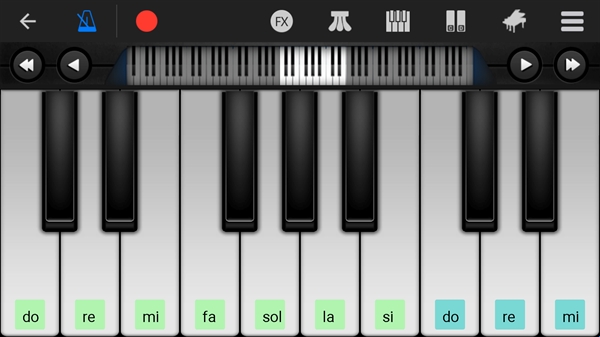 1、打开完美钢琴App,进入弹奏页面后,点击右上方的第三个图标,就可以设置在按键上显示数字了
