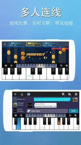通过外接MIDI键盘来控制完美钢琴,演奏,录音和比赛.*贝司,电吉他,木吉他,长笛,萨克斯,电子琴,小提琴,弦音合奏,木琴,竖琴等音色插件可免费下载安装.