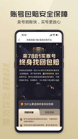 7881游戏交易:专注于游戏账号、游戏装备进行交易的平台。用户们可以在软件中自由的进行交易,不管是出售账号还是购买账号,又或者是出售装备、购买装备等,都可以通过软件来完成,账号的相关信息都和游戏资源都很明确,买卖账号更安全,终身找回包赔。