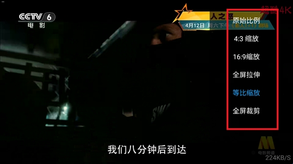 2、点击屏幕右侧弹出电视频道画面比例